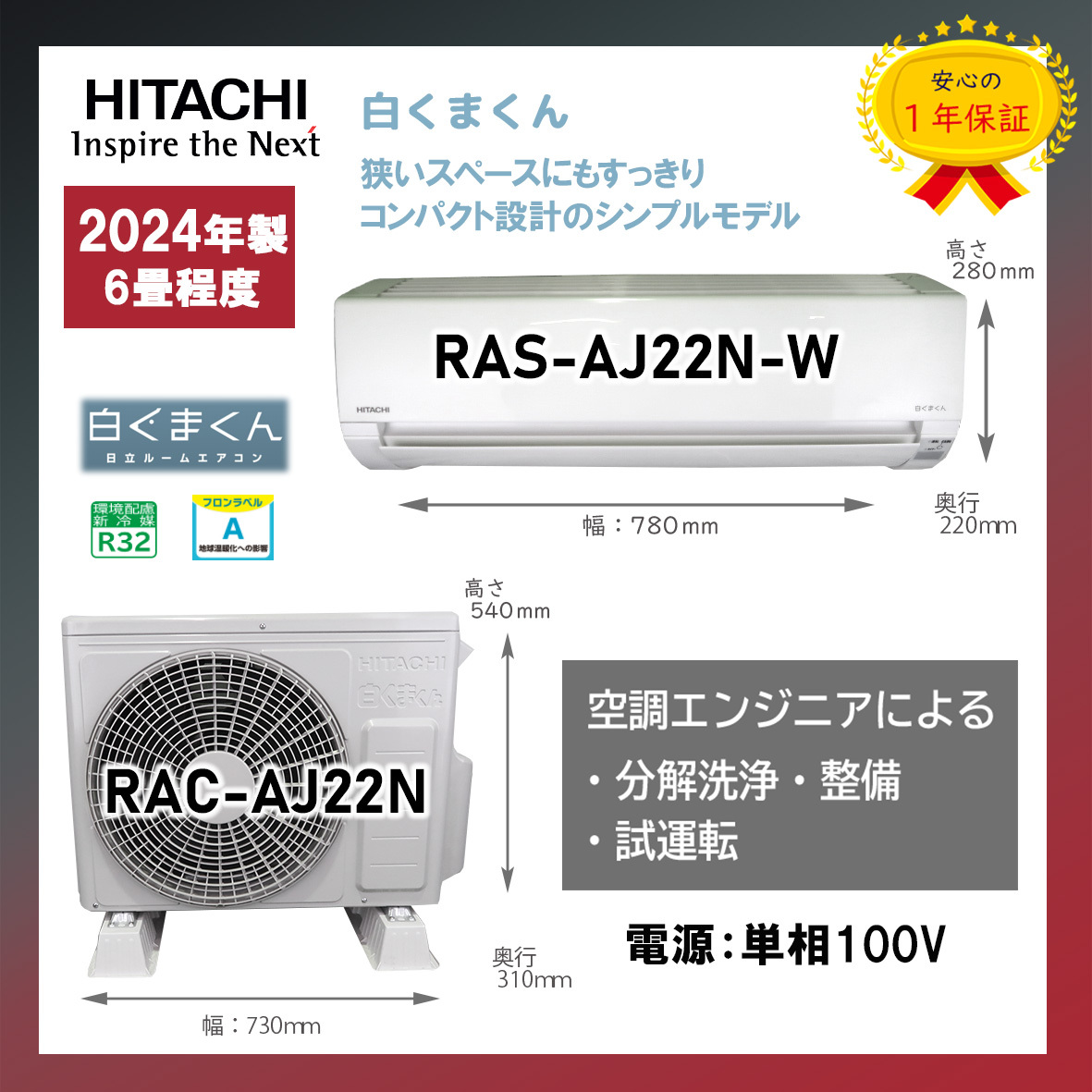 - 保証付き!日立ルームエアコン☆しろくまくん☆2024年☆6畳用☆H223