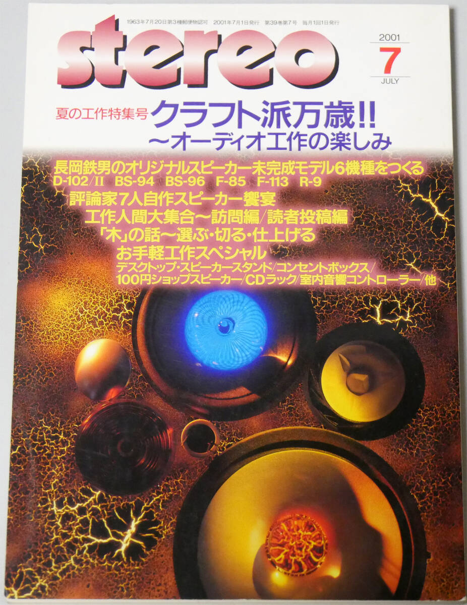 - 美品 stereo ステレオ 2001年7月 長岡鉄男 オリジナルスピーカー未完成モデルを作る 自作 クラフト派万歳!石田善之 福田雅光 入江順一郎