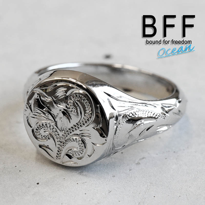 - (8号) BFF ブランド ハワイアンリング メンズ 印台リング 丸型 シルバー スタンプリング 小ぶり 専用BOX付属