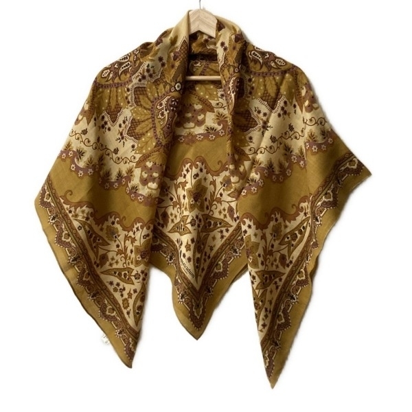 > アクアスキュータム Aquascutum ストール(ショール) - ウール、シルク ベージュ×ライトブラウン×マルチ ペイズリー柄 マフラー