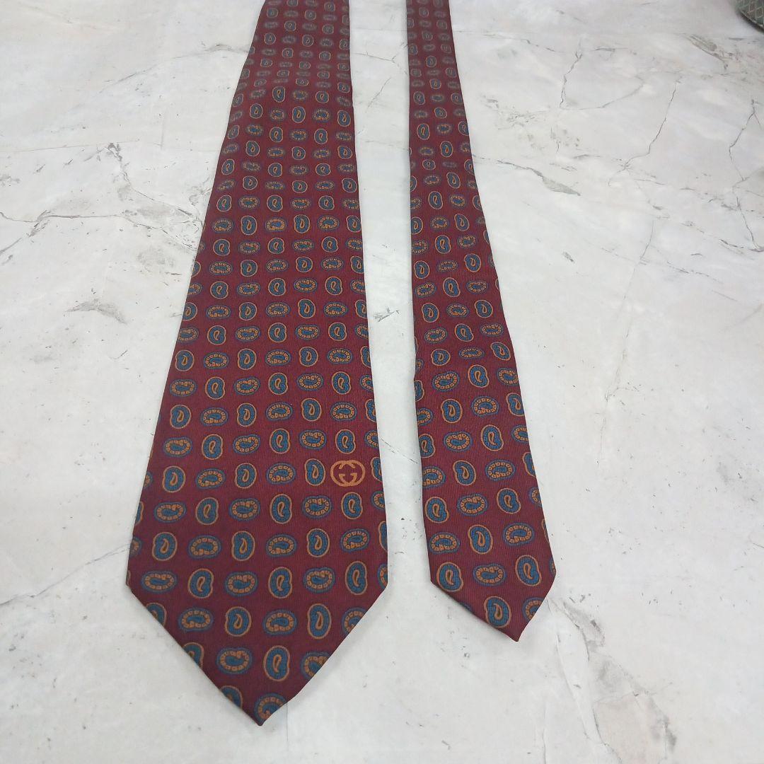 - グッチ ネクタイ 紫+紺橙 ペイズリー柄 シルク100% 絹 上品【n778】