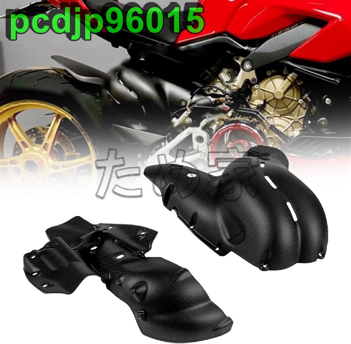 > リアルカーボンファイバー排気カバードゥカティ V4 V4S R パニガーレ 18-21年 熱シールドカウルガード平織りマットオートバイ部品 飾る