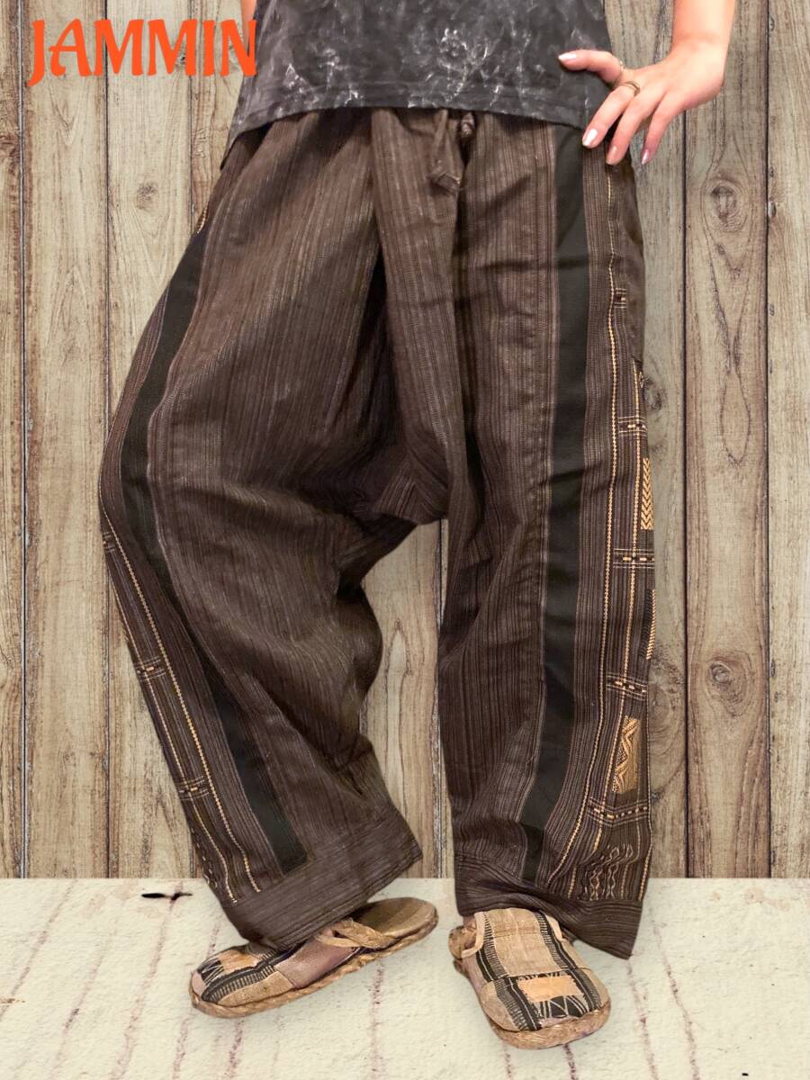 - 織り柄サルエルパンツ エスニック ヒッピー 男女兼用 アジアン 個性派