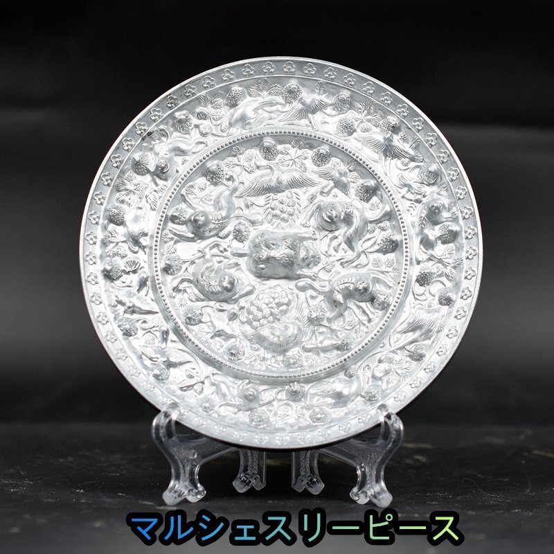 - 極美品 !高品質!中国 青銅鏡 青銅彫 御如意 海獣葡萄鏡 置物 擺件 収蔵 鑑賞 中国美術品
