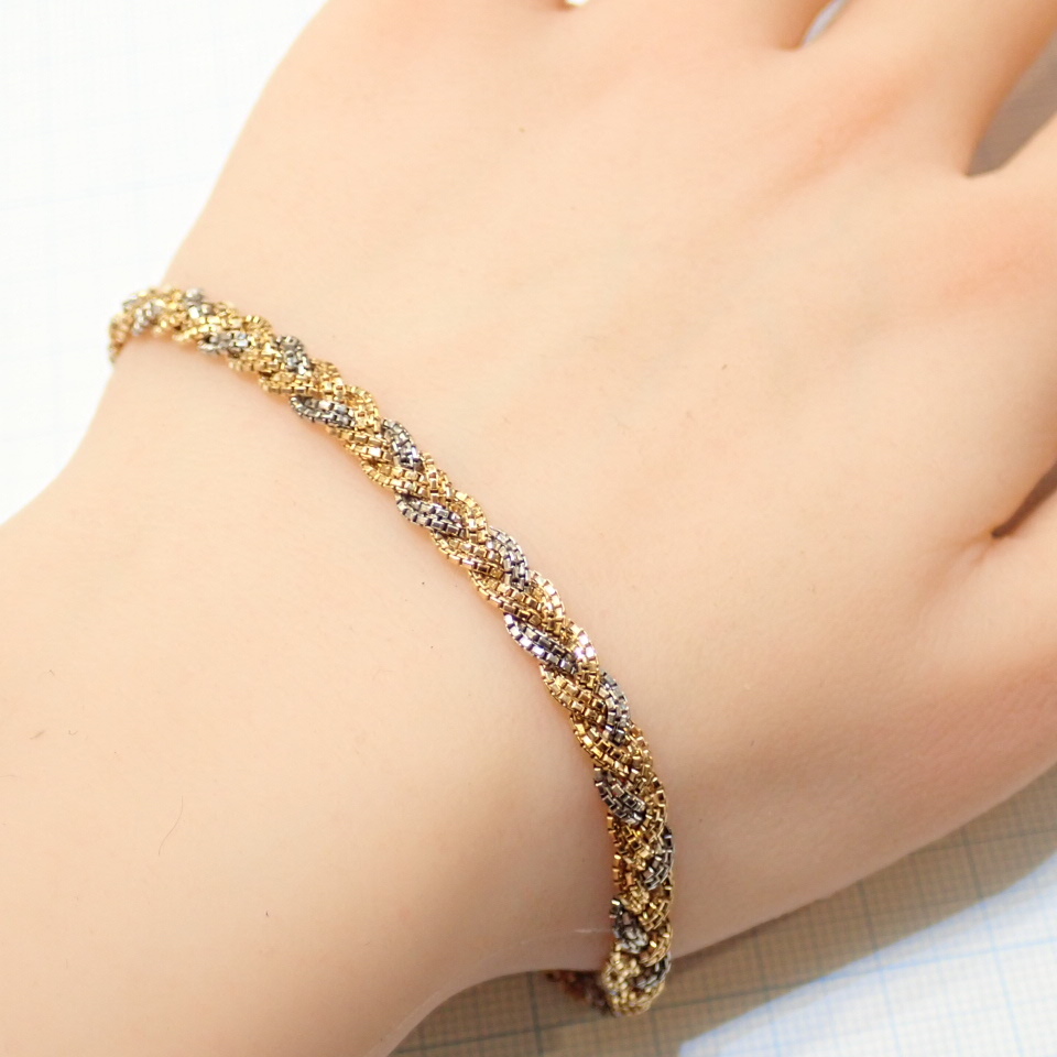 > ■K18Pt850ベネチアンチェーンブレスレット 13.0g 19.5cm■セーフティー付き■コンビ 編み込み■磨き仕上げ■