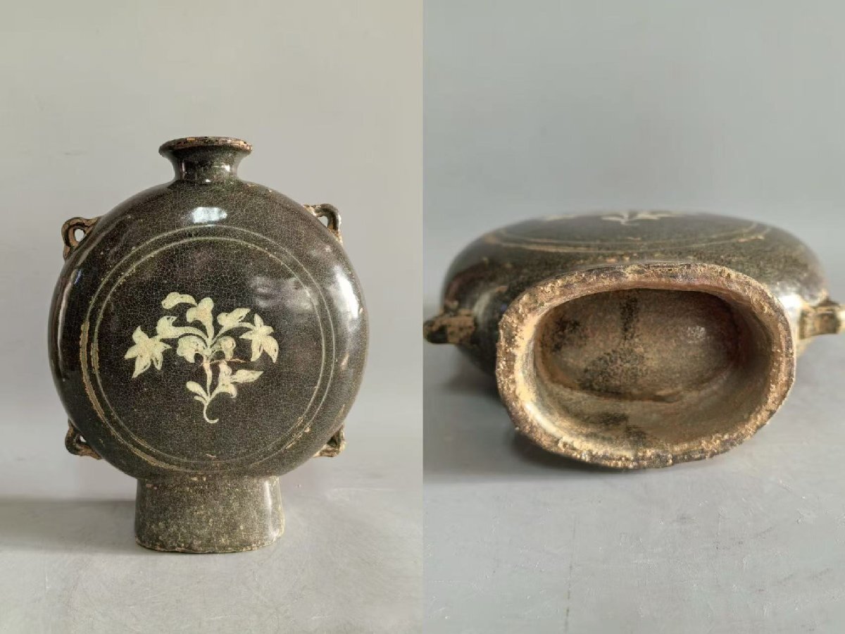 - ■観心・時代旧蔵■K924コレクター放出 朝鮮古美術 高麗磁 李朝時代 古高麗 高麗黒青磁扁瓶 ★高さ21cm横幅17cm