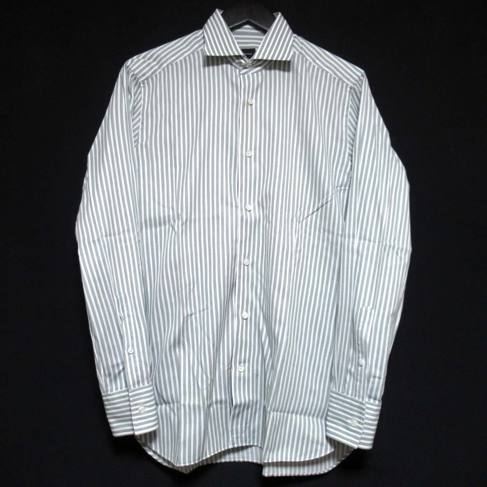 > 美品 Ermenegildo Zegna エルメネジルドゼニア ストライプ柄 ホリゾンタルカラー 長袖 シャツ 40 15 4/3 グレー×ホワイト