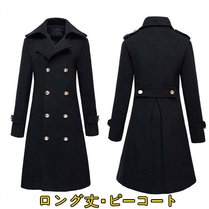 > ピーコート チエスターコート メンズコート ダブル ロングコート ダッフル生地 ビジネスコート 細身 ロング丈 ブレザー Zty-0006-1 XXL