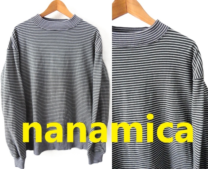 - 日本製■nanamica:ナナミカ■ボーダー柄 モックネック スウェット トレーナー■ホワイト×グレー■Lsize