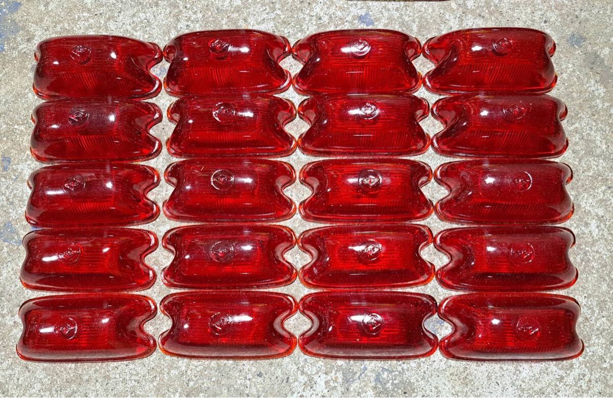 > 17 当時物 板橋用品製作所 ? ガラス 角マーカー レンズ セット角型マーカー かまぼこ デコトラ 車高灯 でべそ デベソ 前開きタイプ レトロ