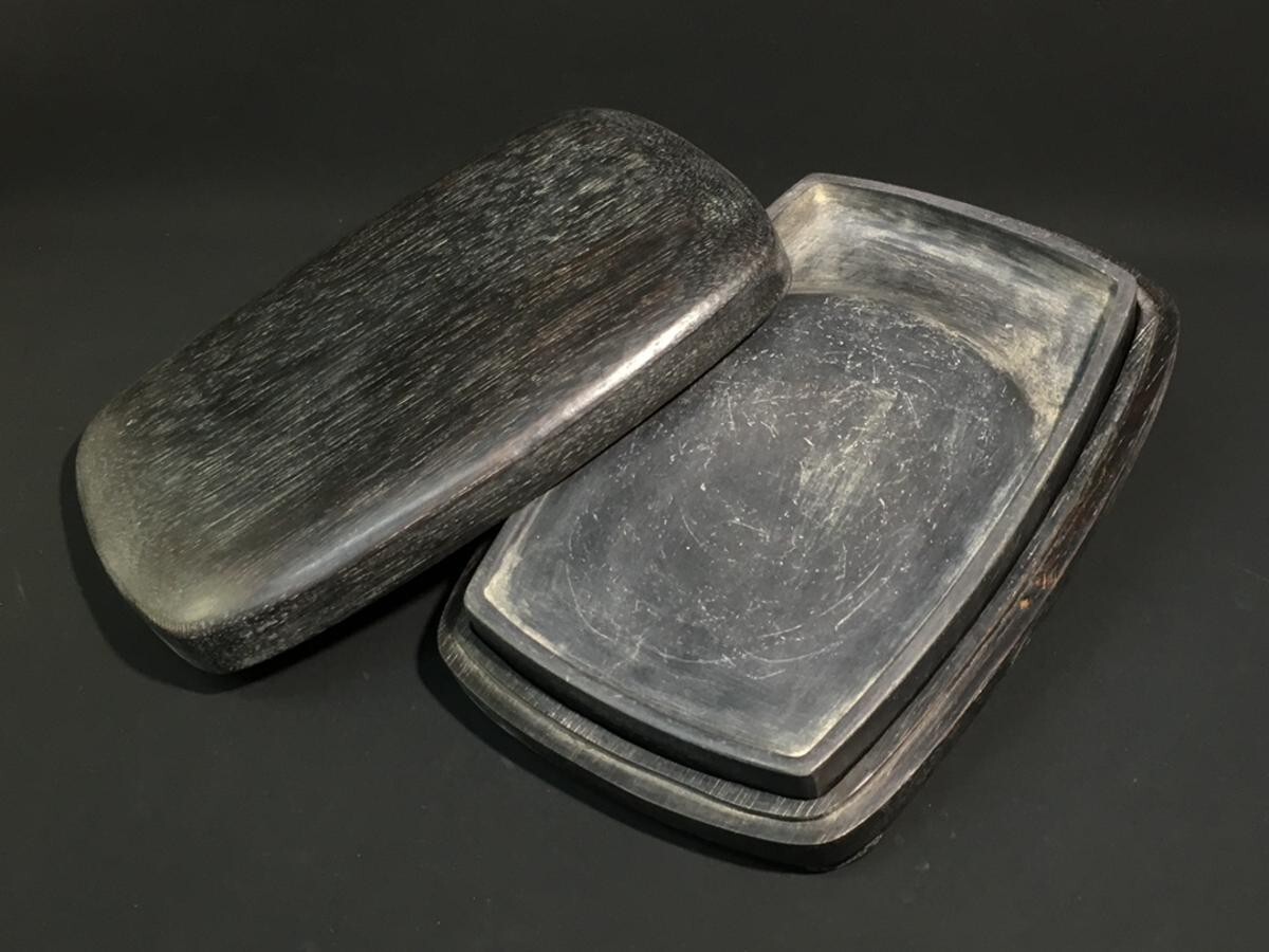 - 清代 端石浮彫 貨布紋文房端渓硯 壽平銘【仁】手彫り 文房具 書道具 中国古硯 蔵出 骨董
