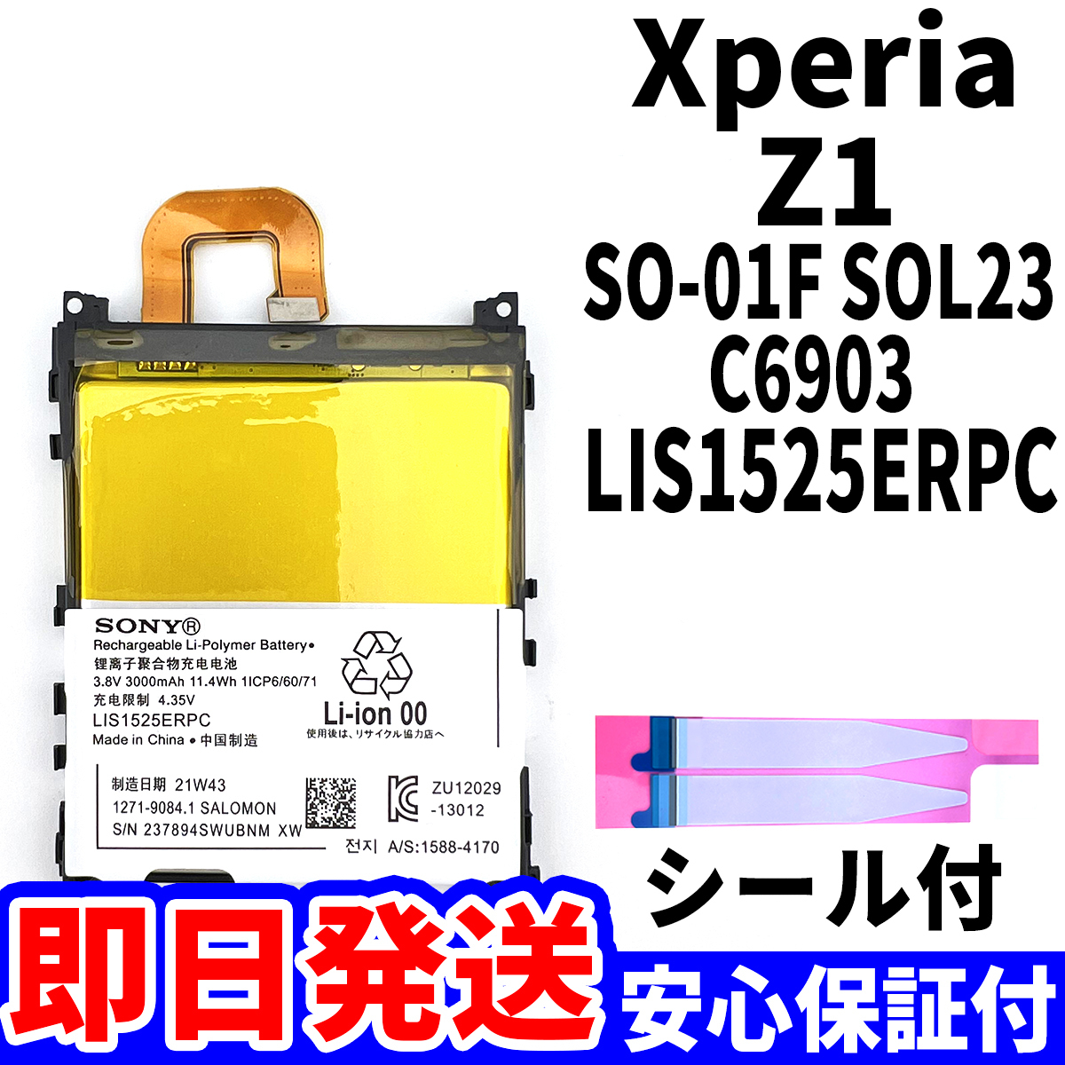 - 国内即日発送!純正同等新品!Xperia Z1 バッテリー LIS1525ERPC SO-01F SOL23 C6903 電池パック交換 内蔵battery 両面テープ 単品 工具無