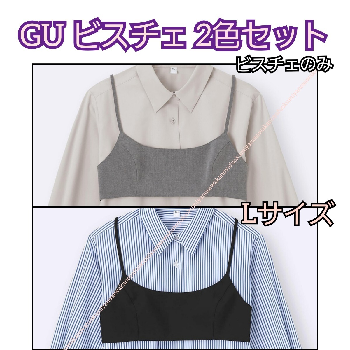> 新品 ギャザー ビスチェ グレー ブラック Lサイズ 2点セット ジーユー ベアトップ レディース キャミソール GU 重ね着