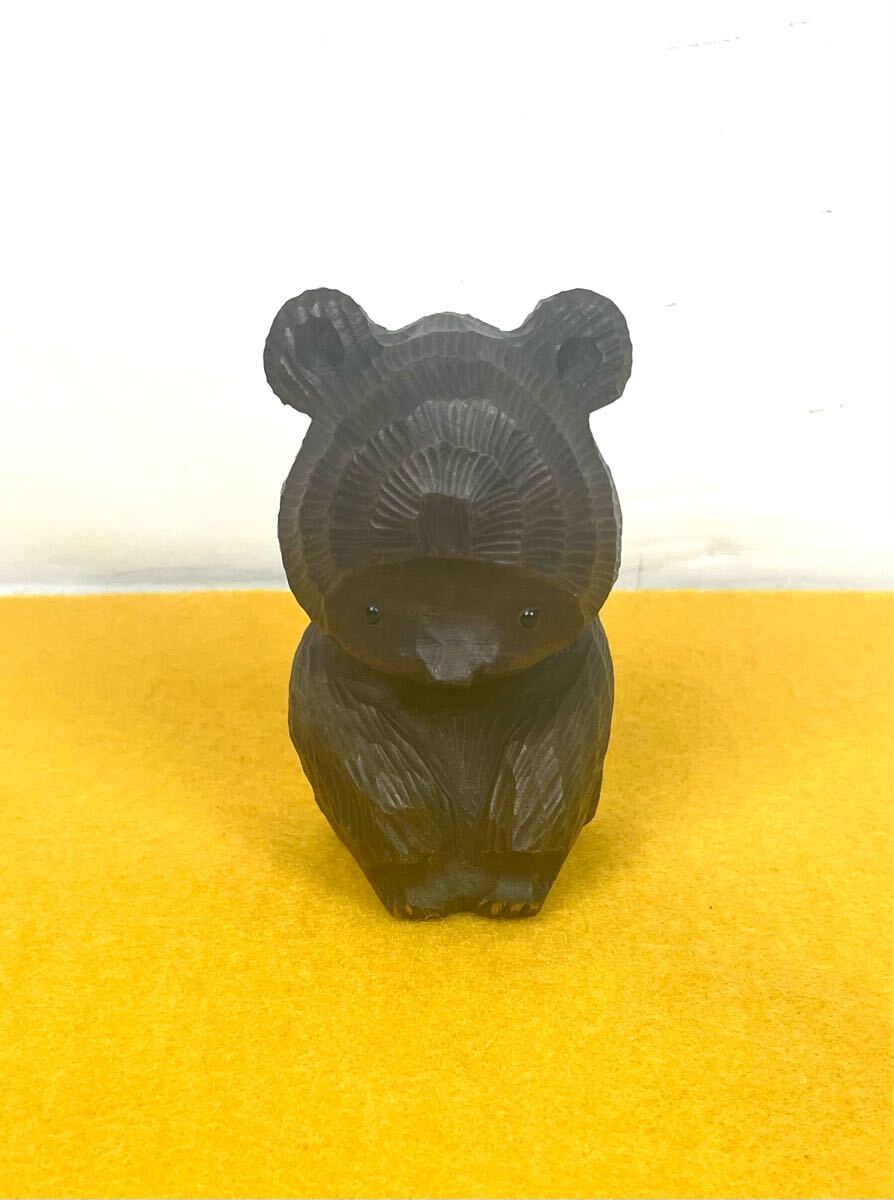 - ●希少 北海道伝統工芸 一刀彫 木彫熊 高10.5cm 木彫り熊・木彫子熊・熊ぼっこ 置物 アイヌ美術●
