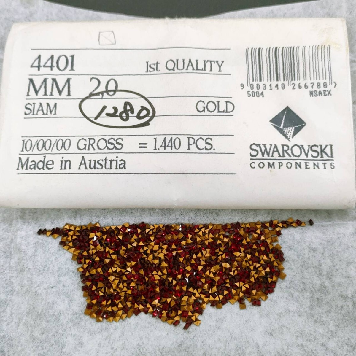 > ☆ほぼ未使用 SWAROVSKI スワロフスキー ヴィンテージ ルース 4401 約1100個 2mm 10gross Siam シャム グルーデコ 裸石 R-451
