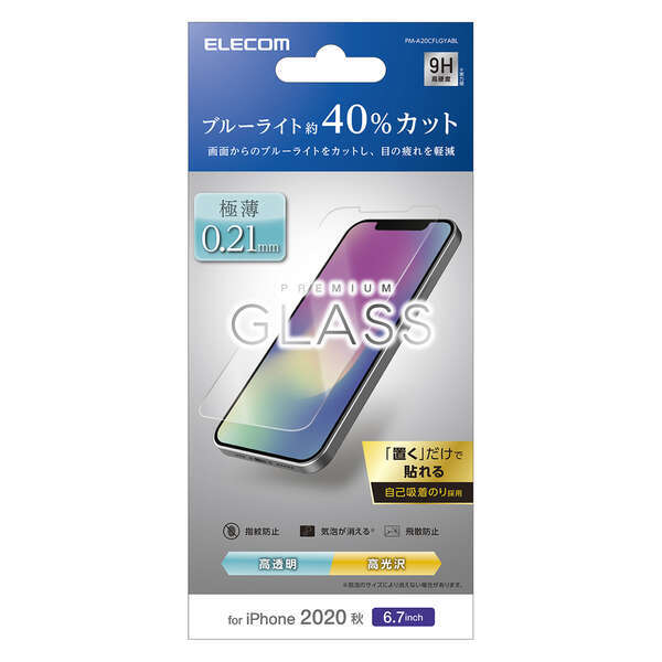 - 新品/送込 エレコム iPhone 12 Pro Max用 6.7インチ ARコート+40%ブルーライトカット 9H 超強靭ガラスフィルム PM-A20CFLGYABL 定価2731円