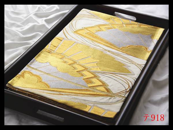 - 蔵【テ918】西陣美品 アンティーク 檜扇紋 正絹純金糸六通高級美術袋帯 ◇検◇簪着物名古屋帯和装小物帯締め