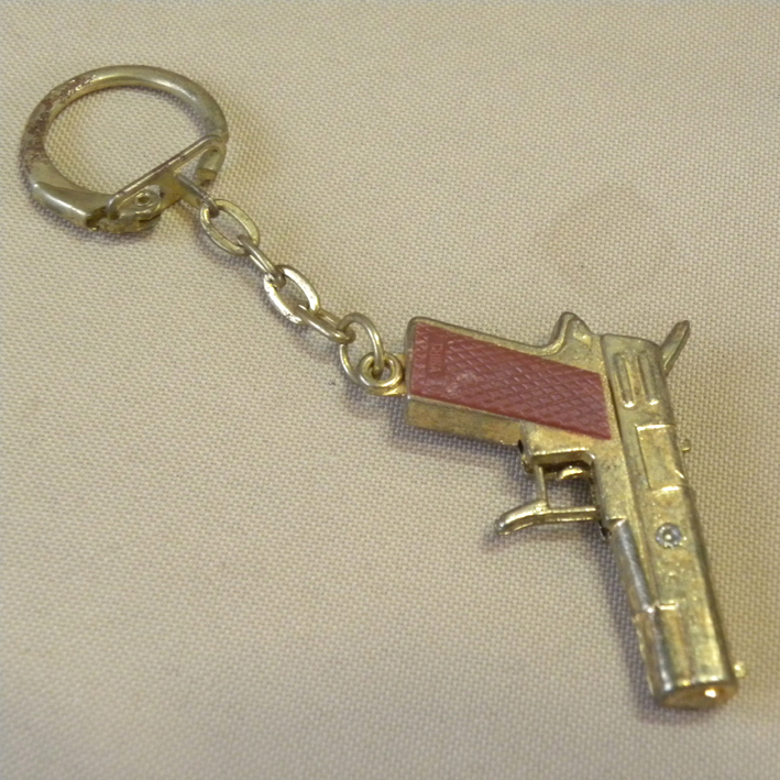 - 1980年代 当時物 ガチャガチャ ミニキャップガン キーホルダー ( 昔の ビンテージ 昭和レトロ 駄玩具 武器 金属製 コスモス 拳銃 ピストル