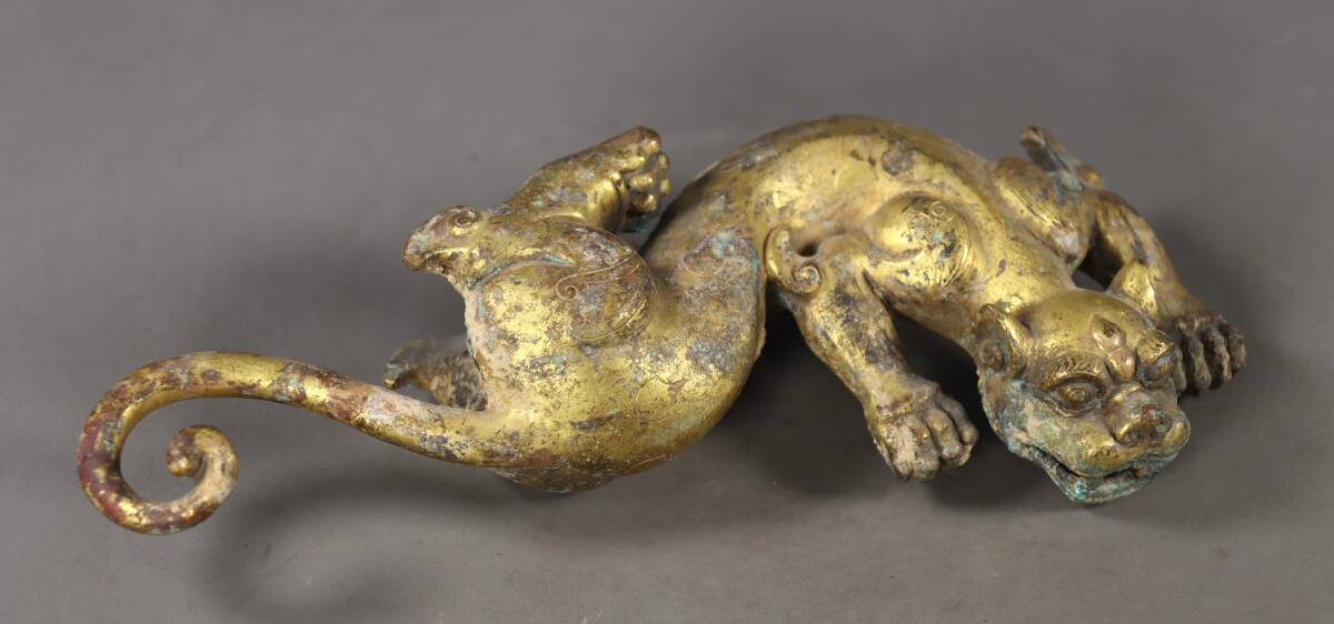 - 唐物 清代 銅塗金 爬壺獸 銅製品 銅器 中国美術品 時代物 D63