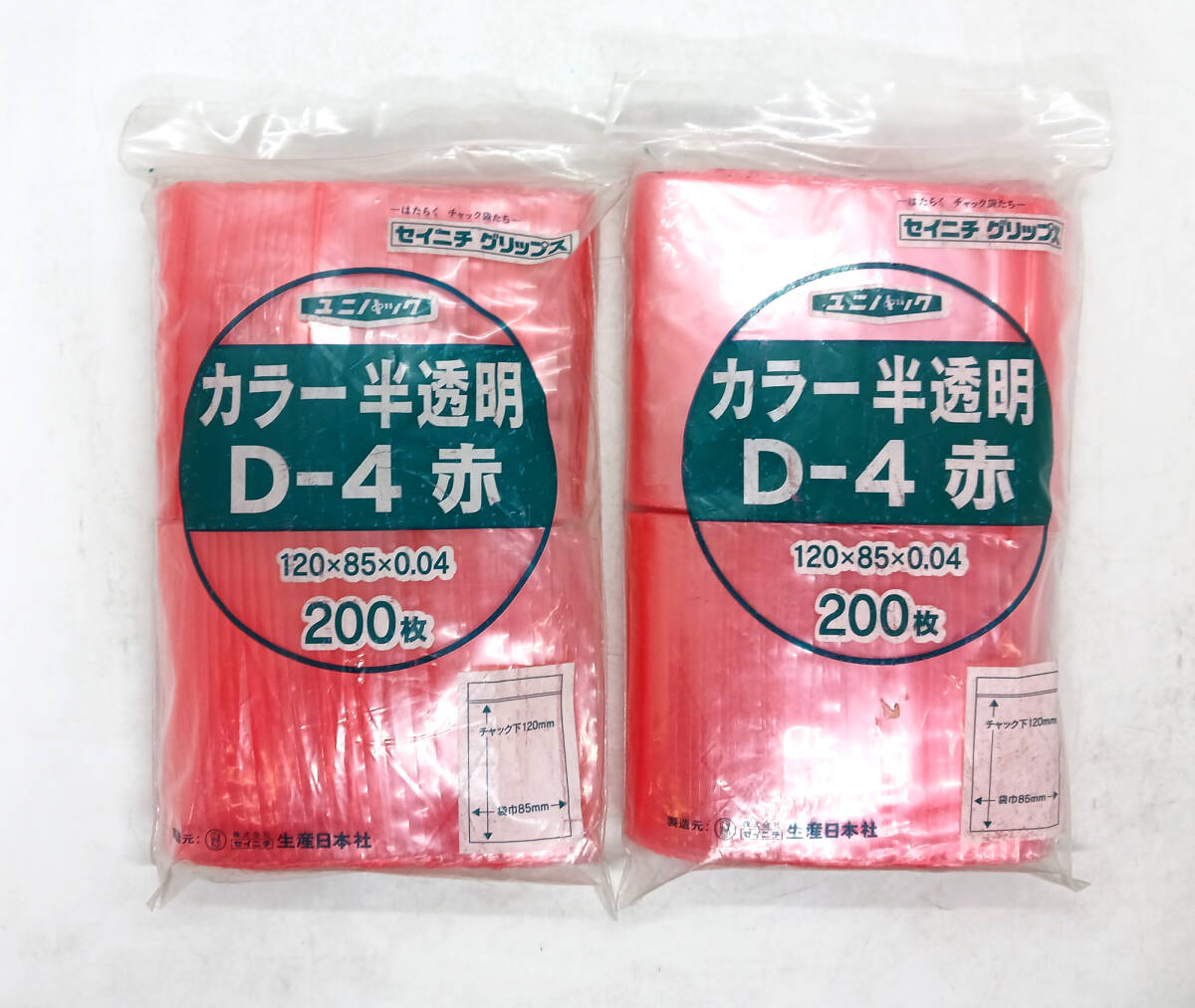 - 【長期保管品】ユニパック カラー半透明 D-4 赤 200枚×2袋