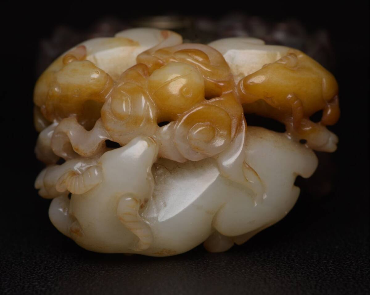 - 【超珍館蔵】和田玉製 細密彫 三羊開泰 置物 古賞物 古美術品 稀少珍蔵品