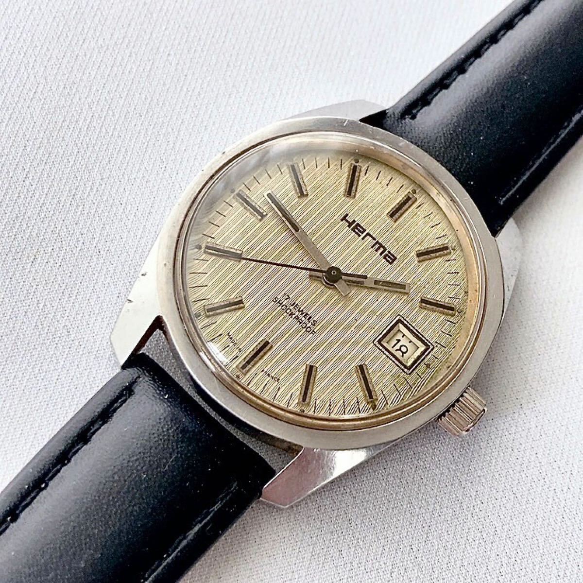 - ビンテージ フランス製 Herma 17石 メンズ手巻き腕時計 稼動品 ♪