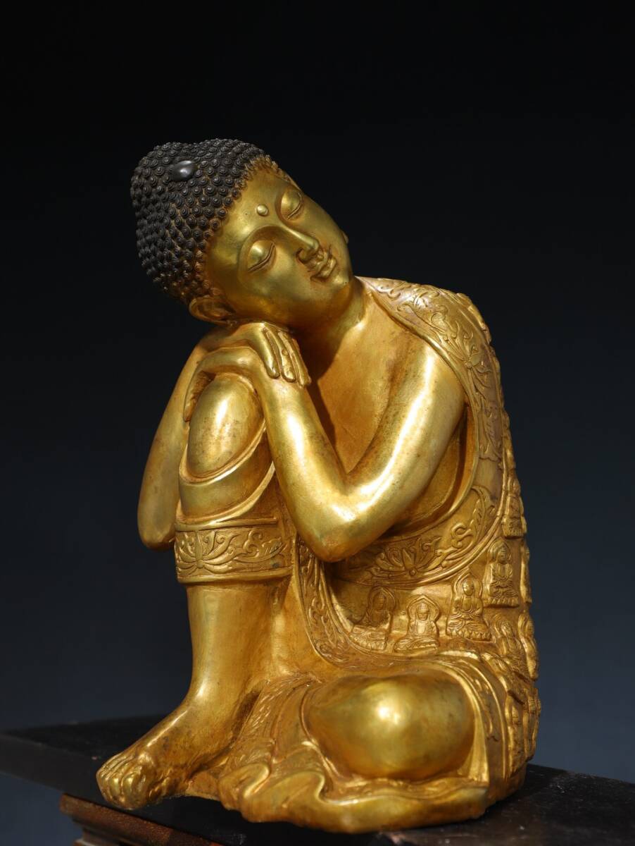 - ▽鴻▽ 銅製 塗金 睡仏 置物 古賞物 中国古玩 中国古美術