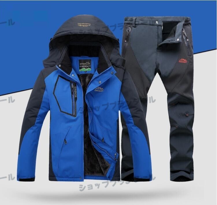 - 秋冬スキーウェア メンズ スノーボードウェア マウンテンジャケット 上下セットスキーパンツ 男女兼用 防風保温 L~5XL 紺