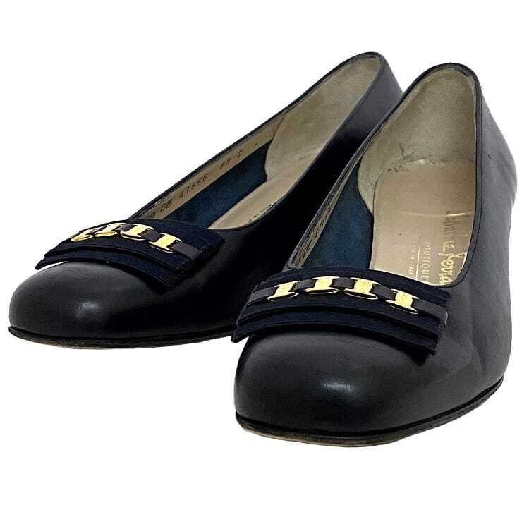 - サルヴァトーレ フェラガモ パンプス ブラック ネイビー ゴールド ヴァラ 美品 24.0cm 6 1/2 レザー GP