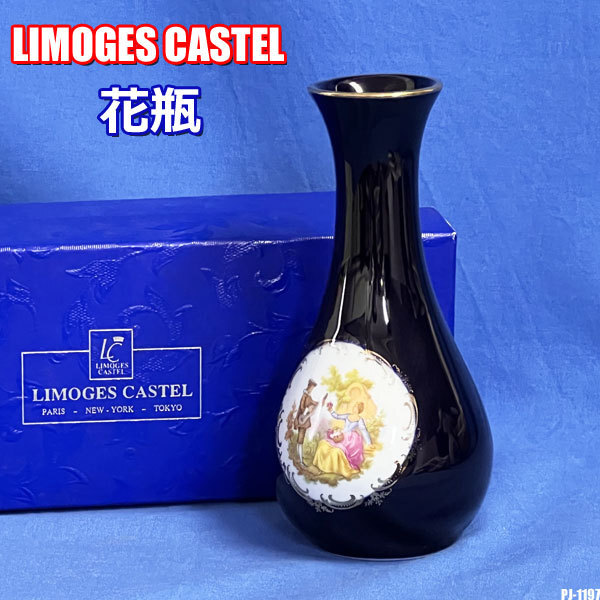 - アンティーク LIMOGES CASTEL フラワーベース 18cm 花瓶 一輪挿し 紺色 陶器 フランス リモージュ PJ-1197