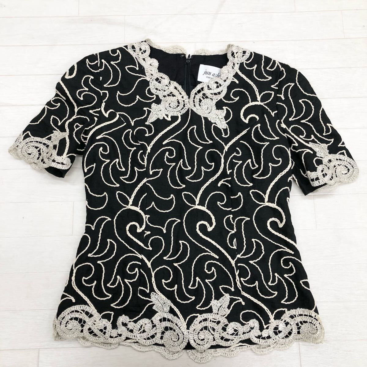 > M11〓 jun ashida 半袖カットソー レディース サイズ7 ブラック ベージュ トップス 半袖Tシャツ シャツ レース 刺繍 カジュアル