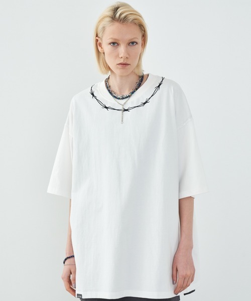 - ●美品 AIVER アイバー Tシャツ 刺繍モチーフ WHT サイズS