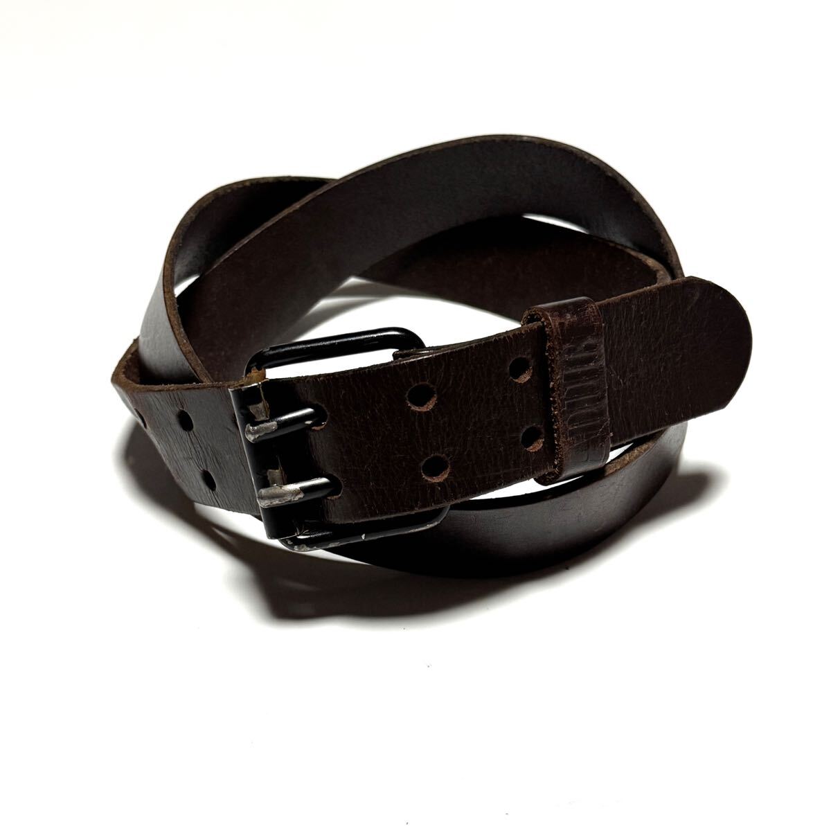 > 80s w92㎝〜w110㎝ ADDICT 本革 ビンテージベルト メンズ 茶 ブラウン レザーベルト 革 アメリカ古着