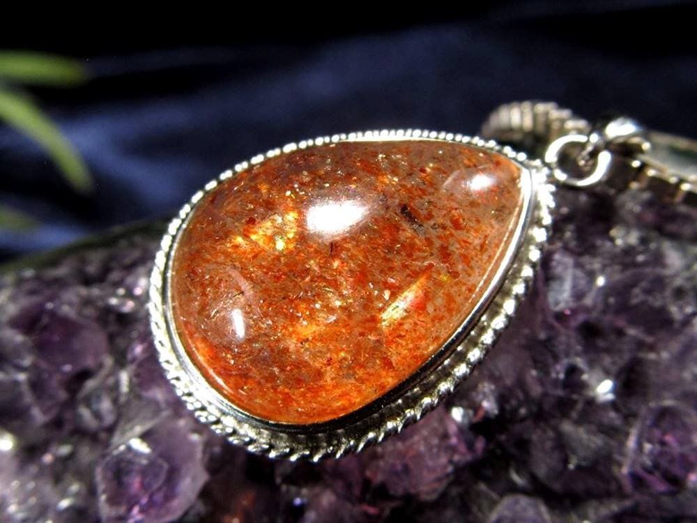 - ドロップ型のエキゾチックなサンストーンのシルバートップ