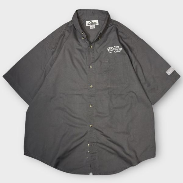 > ★Time Warmer Cable刺繍★両袖ワッペンロゴ★Tri-Mountain 半袖BDワークシャツ sizeL グレー系 古着 クリーニング プレス済み 2012