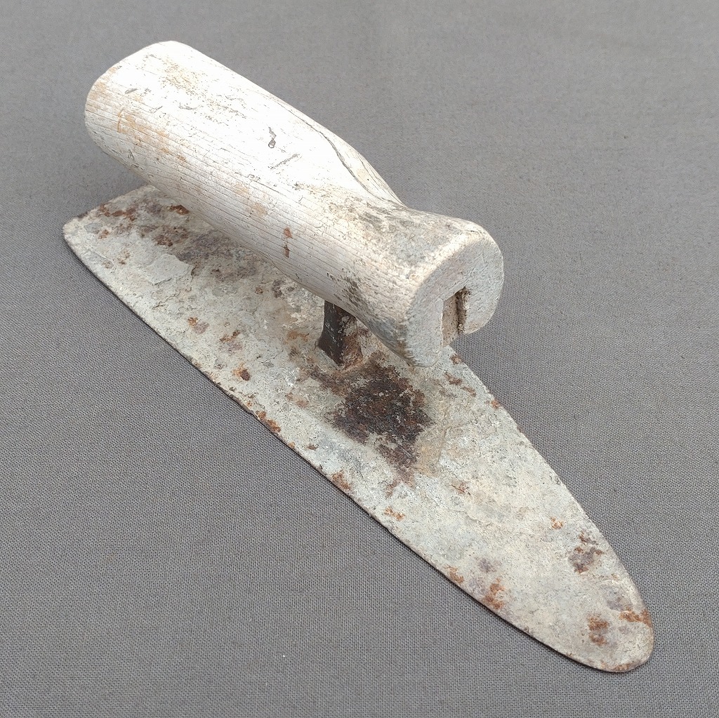 - 左官鏝 在銘 鏝の長さ約188㎜ 最大幅約70㎜ こて コテ 古鏝 左官道具 日本製 【3850T11】