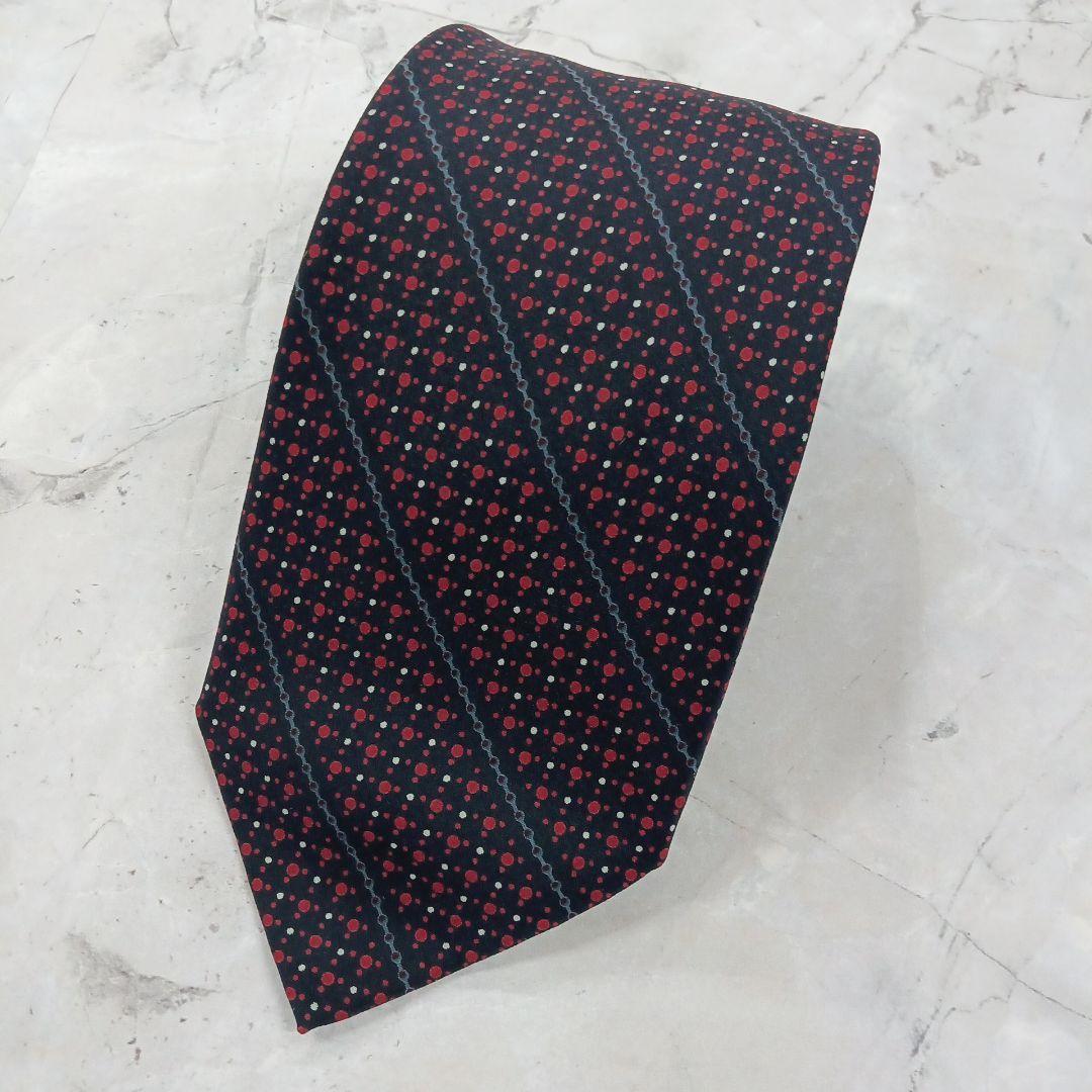 - イブサンローラン ネクタイ 深紅 ストライプ柄 シルク100% 絹【n977】