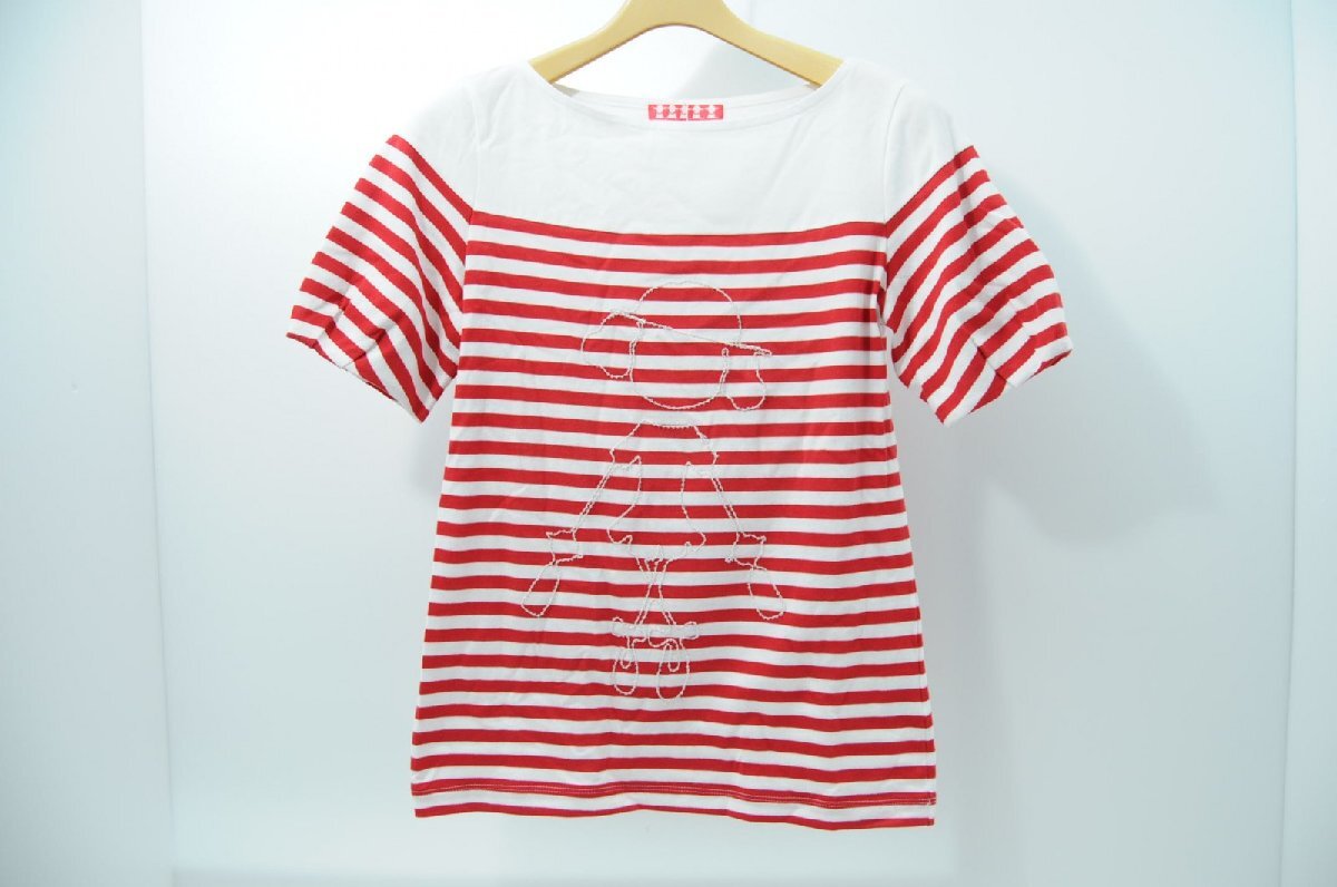 > coco 未使用品【SALE】 ピッコーネクラブ レディース 半袖シャツ 38(M) 白×赤 訳あり ボートネック レターパックプラス発送可 63816