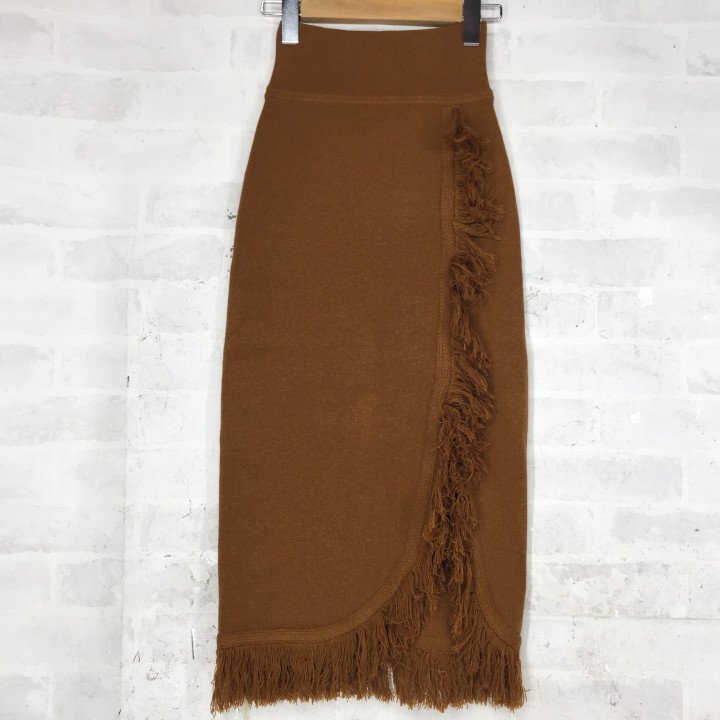 - snidel スナイデル フリンジニットスカート タイトスカート SIZE: FREE キャメル LH632025032806