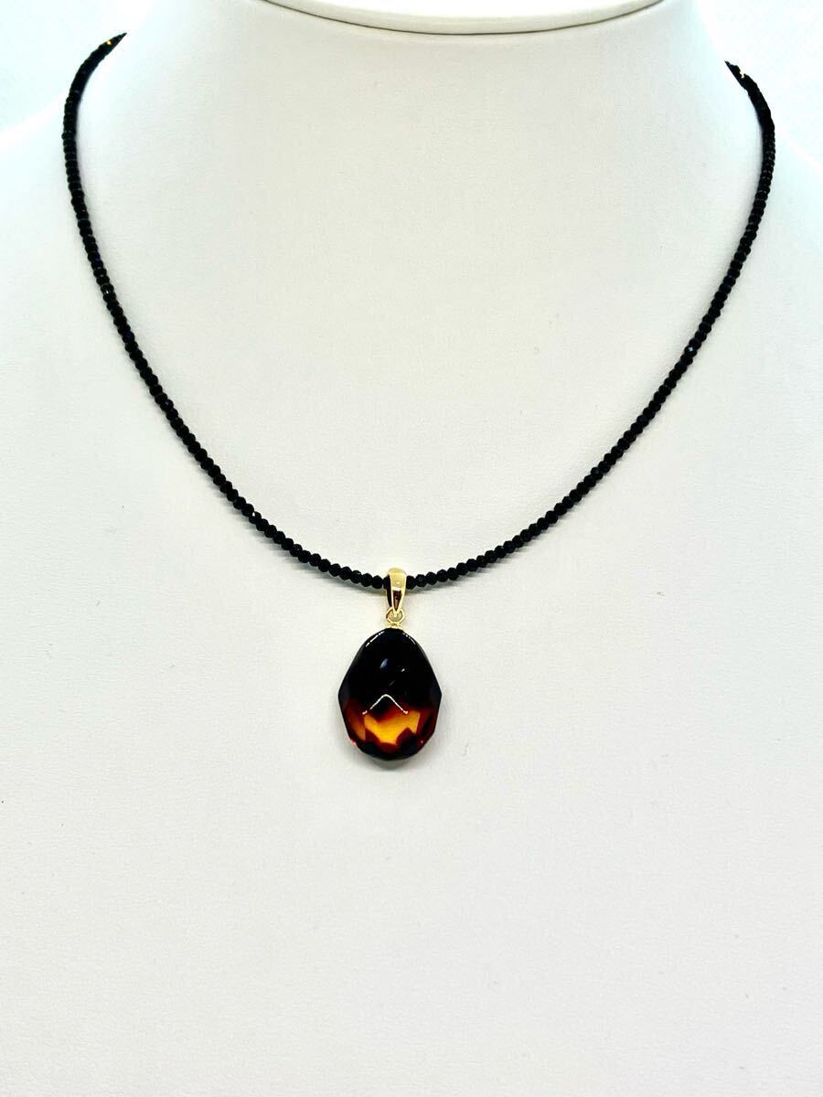 - 【新品】リトアニア産バイカラー琥珀ネックレス*グラデーションカラー*コハク*こはく*アンバー*ブラックスピネル*シンプル