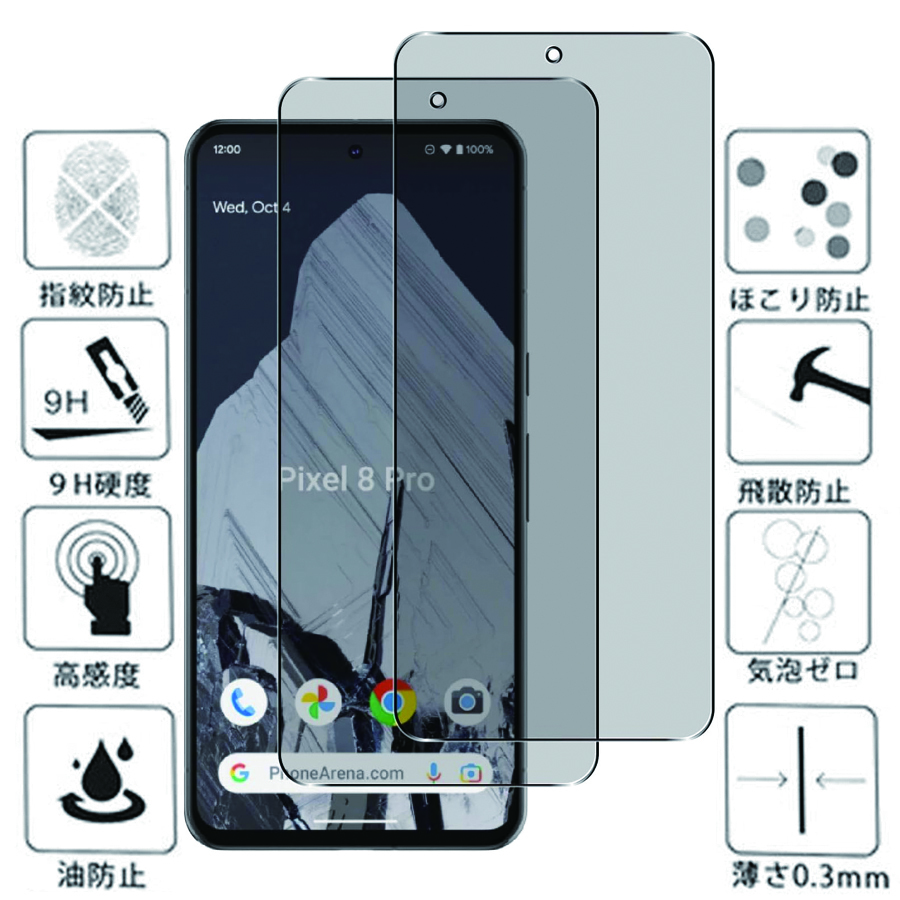 - 2枚入り 覗き見防止 Google Pixel8 Pro ガラス フィルム ググル ピクセル エイト プロ 画面 保護 スクリーン カバー シール シート Film