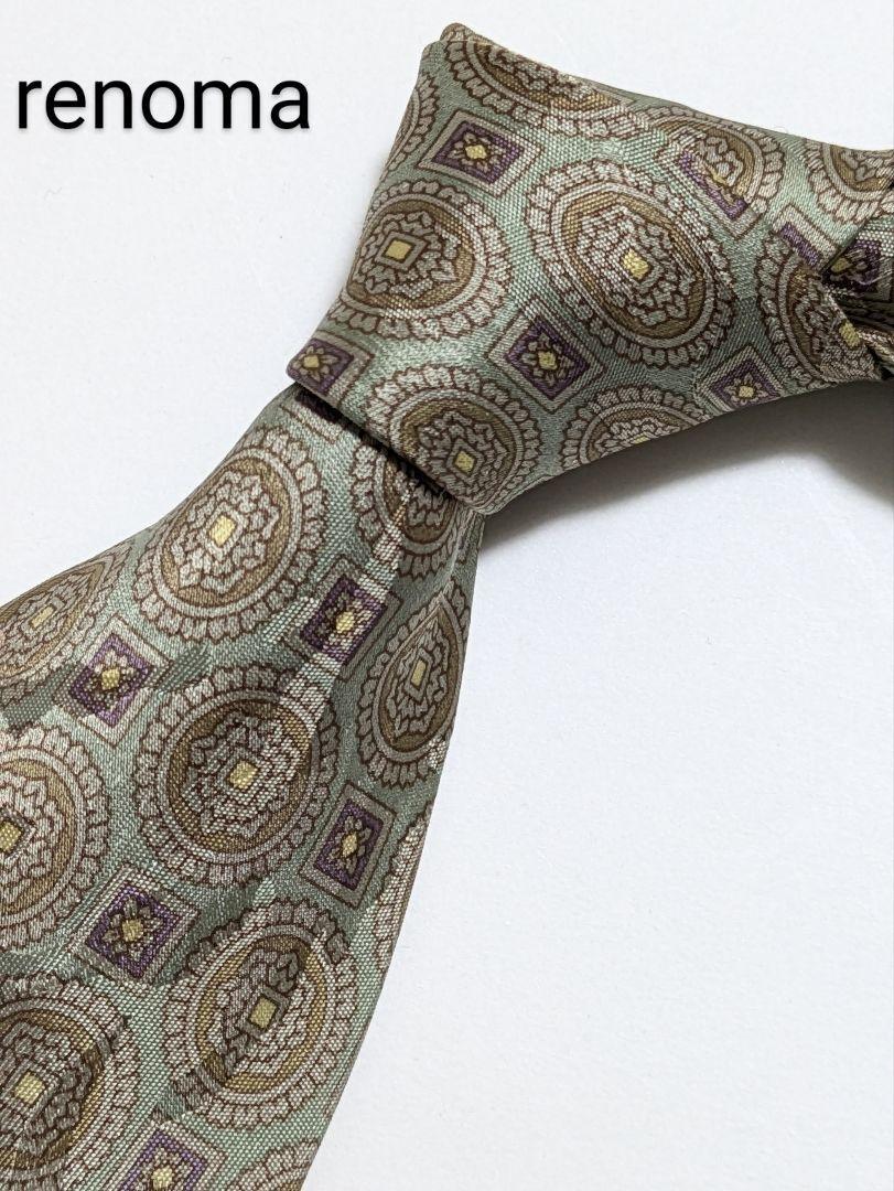 - renoma/レノマ/総柄/グリーンネクタイ