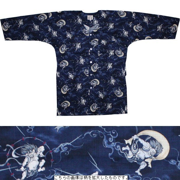 - お祭用品/肉襦袢 鯉口シャツ 風神雷神 226紺 2号(子ども用) お祭り衣装 お祭り用品