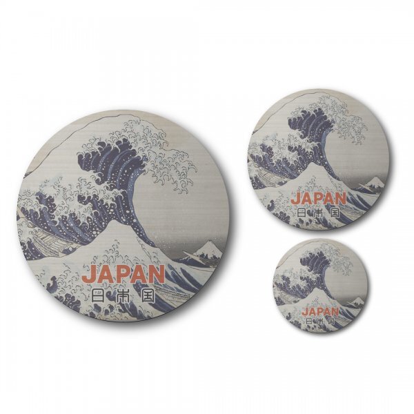 - 日本製 浮世絵 ステッカー 3点セット 丸型 波 富士山 ヘアライン マット 新品 日本の美しさ お土産 プレゼント おしゃれ シンプル 和柄