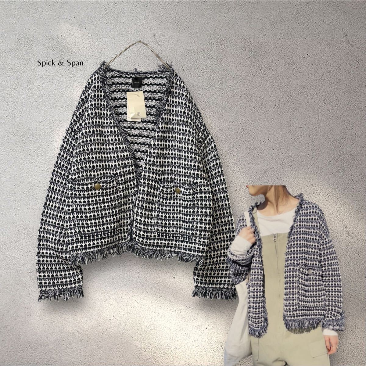 > 1673 ★新品★【Spick & Span/スピック&スパン】フリンジニットジャケット 羽織り カーディガン 長袖 F ツィード キレイめ オフィス