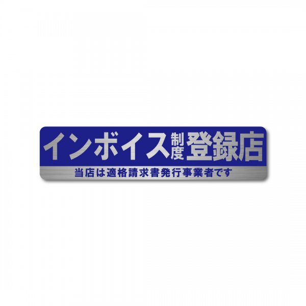 > インボイスステッカー 登録店 ヘアライン ステッカー ブルー 新品 150mm×35mm 長方形 適格請求書事業者制度 150mm x 35mm 耐候 防水 高級