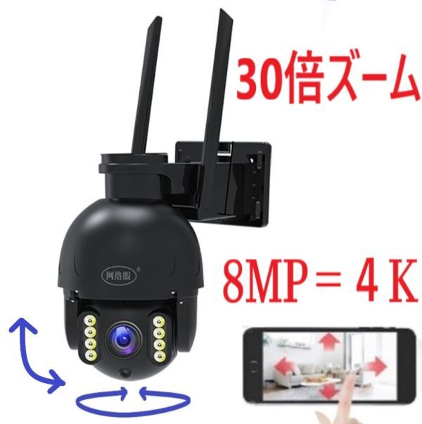 > 30倍ズームWifi防犯カメラ 8MP=4K 双方向通話 監視用 赤外線ナイトビジョン デュアルレンズ モーション検出とアラーム ★鄭AV