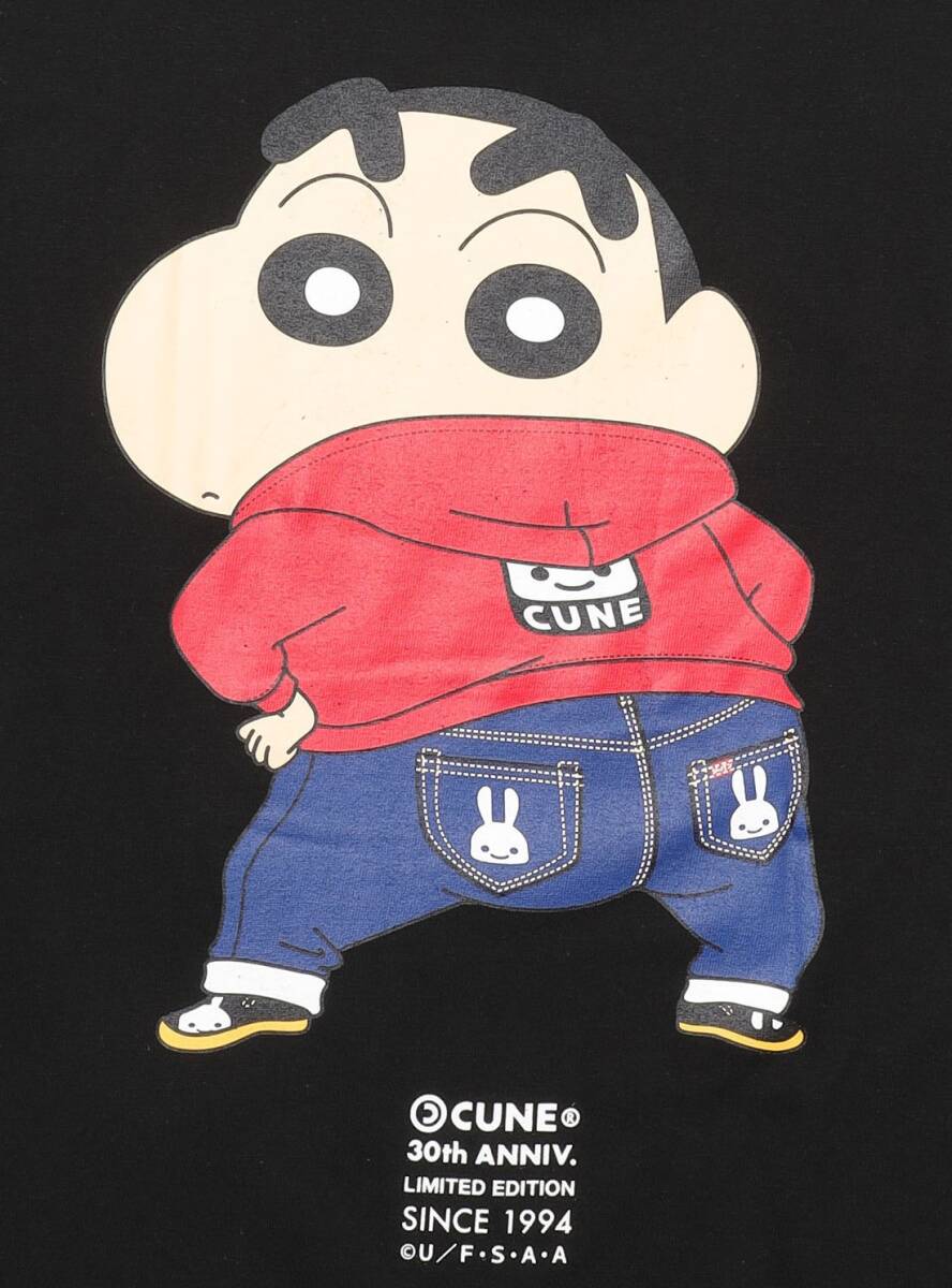 > 2024 CUNE クレヨンしんちゃん『30th ANNIV T-SHIRTS 野原しんのすけ』黒 丸首 半袖 前後プリント L・バスト約108cm※未開封品/タグ付き