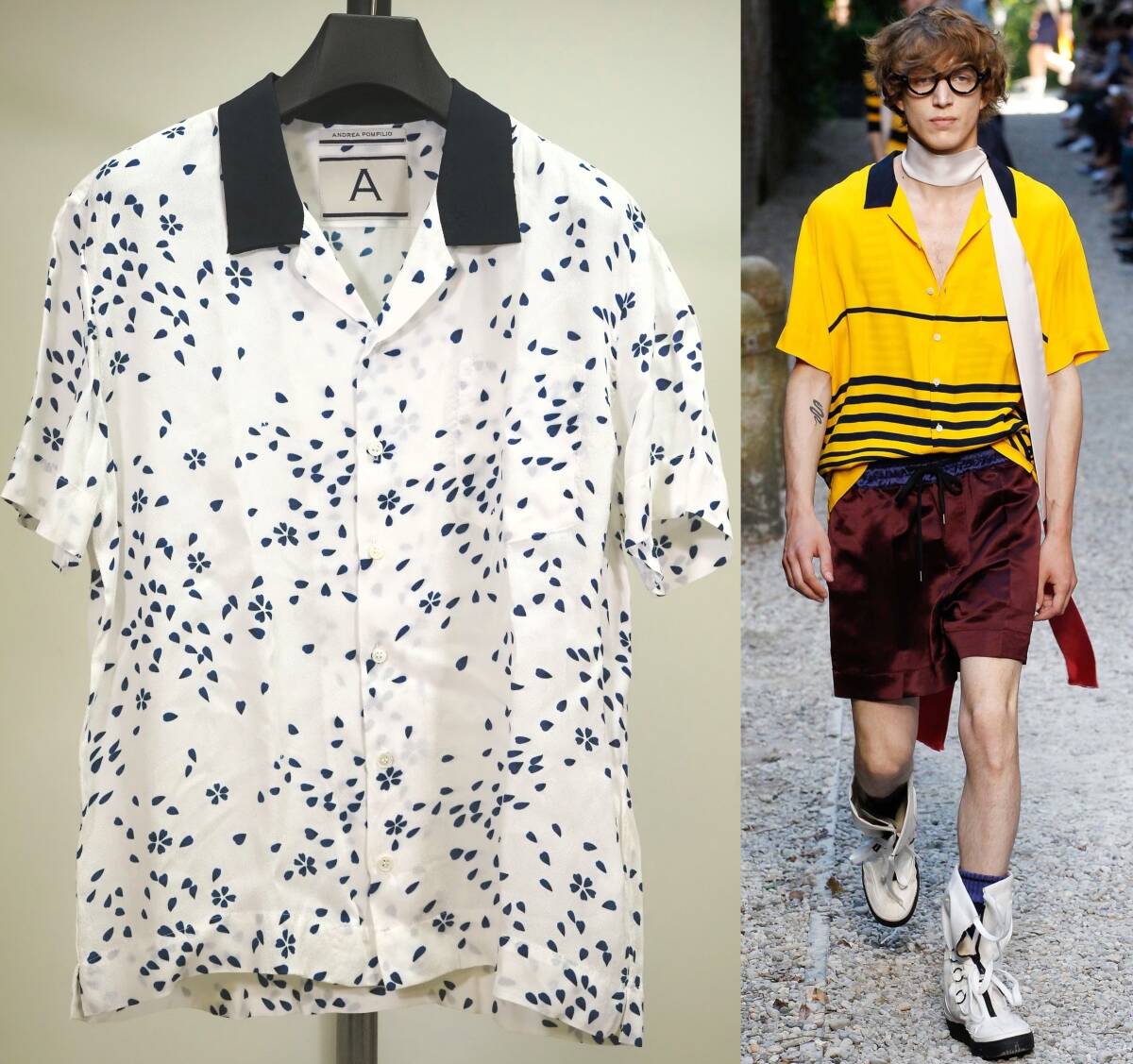 > 美品 ANDREA POMPILIO アンドレアポンピリオ 16SSオープンカラー半袖花がらシャツ44白×紺 Italy製
