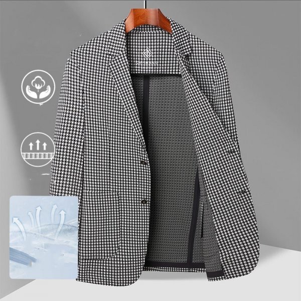 - 新品★未使用 テーラードジャケット 千鳥格子 春夏服 涼しい ストレッチ カジュアルスーツ メンズ ブレザー【6859】黒+白 4XL